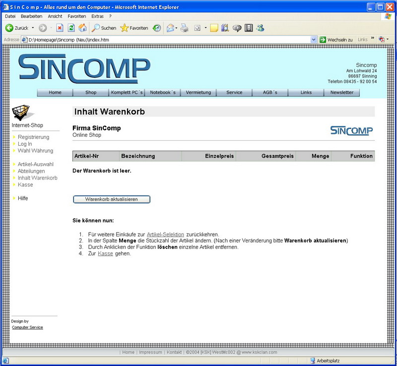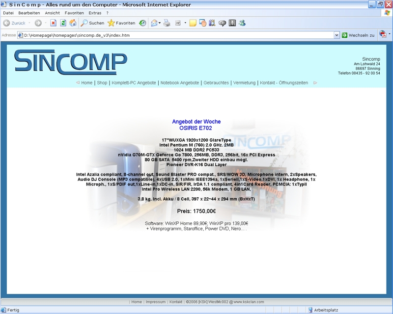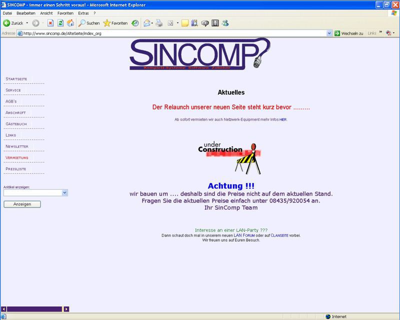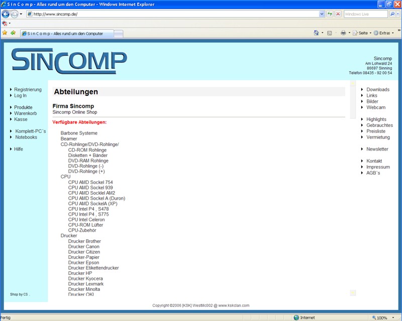 Die Seite der Fa. SinComp aus Sinning. (Klick auf das Bild um es zu vergrössern)